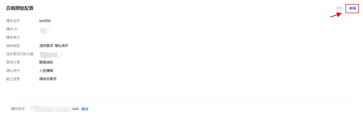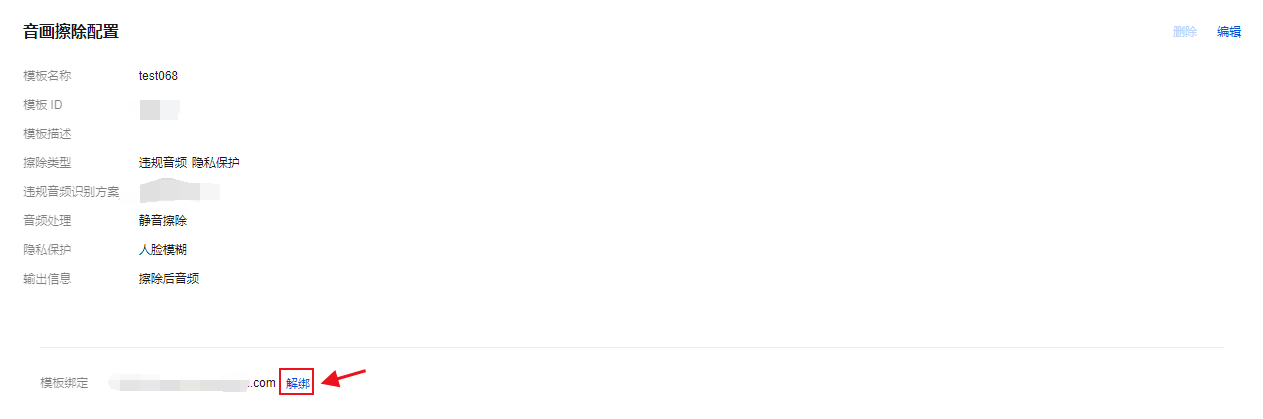 域名维度绑定和解绑音画擦除模板的具体操作及相关说明,请参见 音画擦除配置。