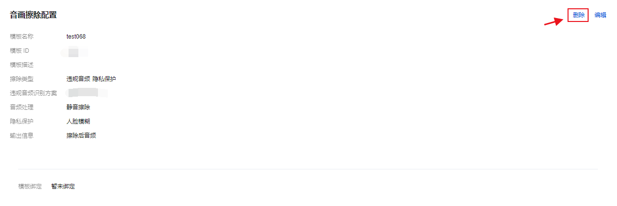 2. 选择您已创建成功的音画擦除模板,单击上方的删除。