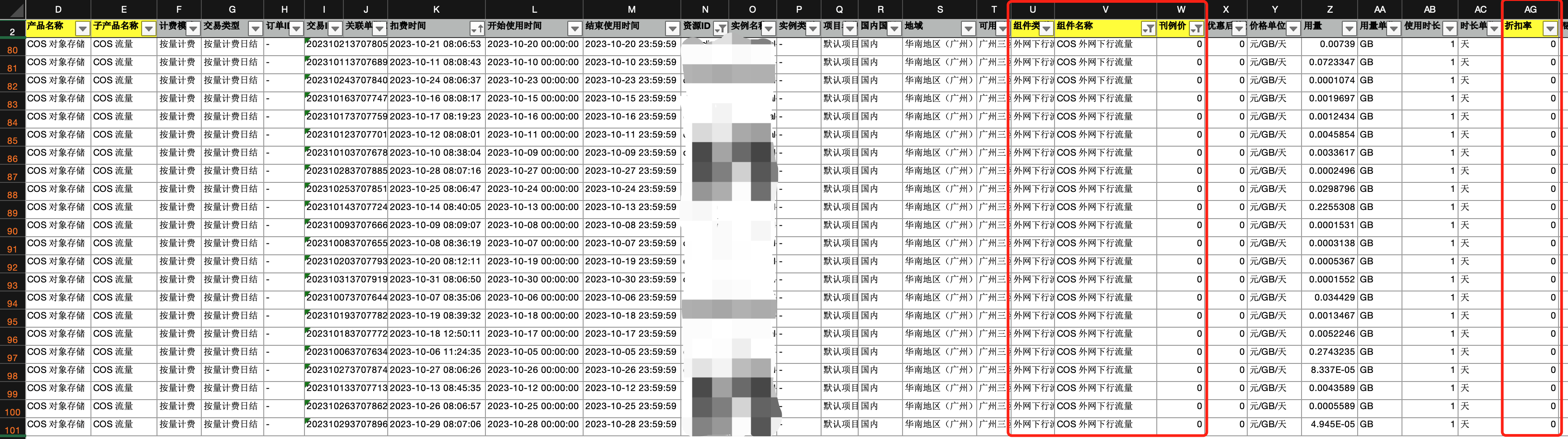 在 COS的 L3账单中,刊例价和折扣率均为0的记录,表示资源包抵扣。该记录对应的用量,即资源包抵扣后付费的用量。