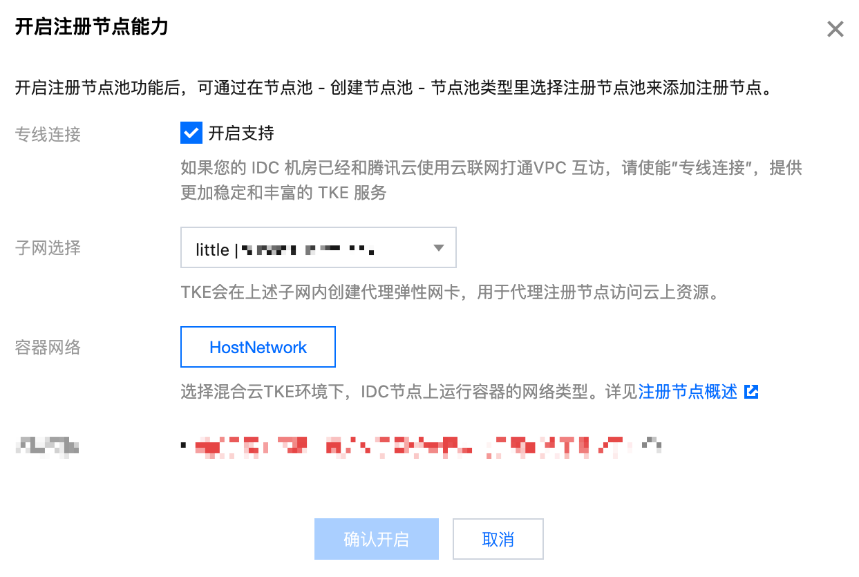 VPC-CNI 模式集群,当前只能开启注册节点(专线版),暂时不支持注册节点(公网版)。
