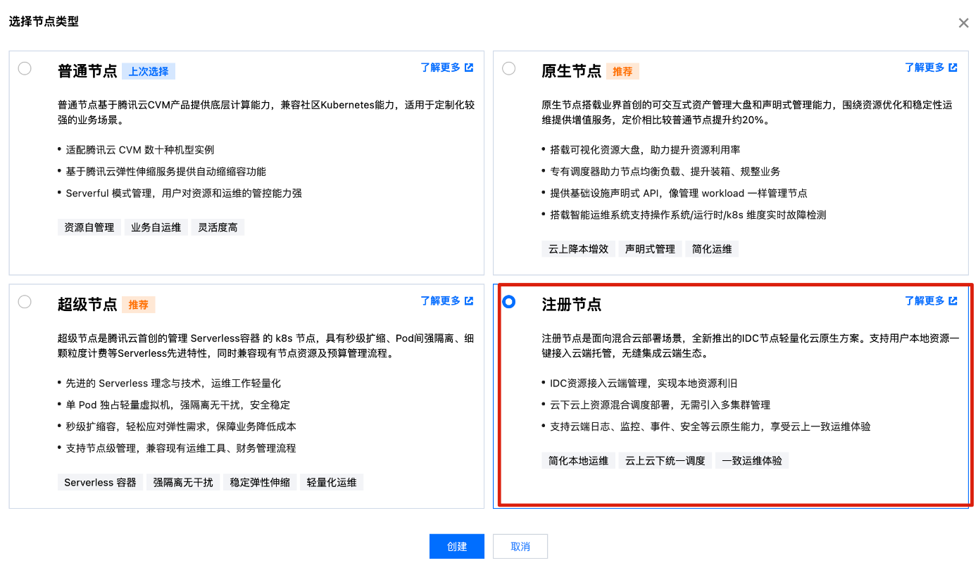节点池类型:选择注册节点池类型。