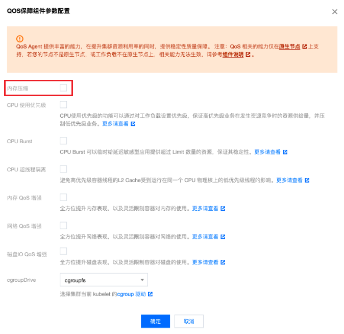 spec.lableSelector.matchLables 指定在哪些 Pod 上启用内存压缩,示例如下:apiVersion: ensurance.crane.io/v1alpha1kind: PodQOSmetadata:name: memorycompressionspec:labelSelector:matchLabels:compression: enableresourceQOS:memoryQOS:memoryCompression:compressionLevel: 1enable: true
