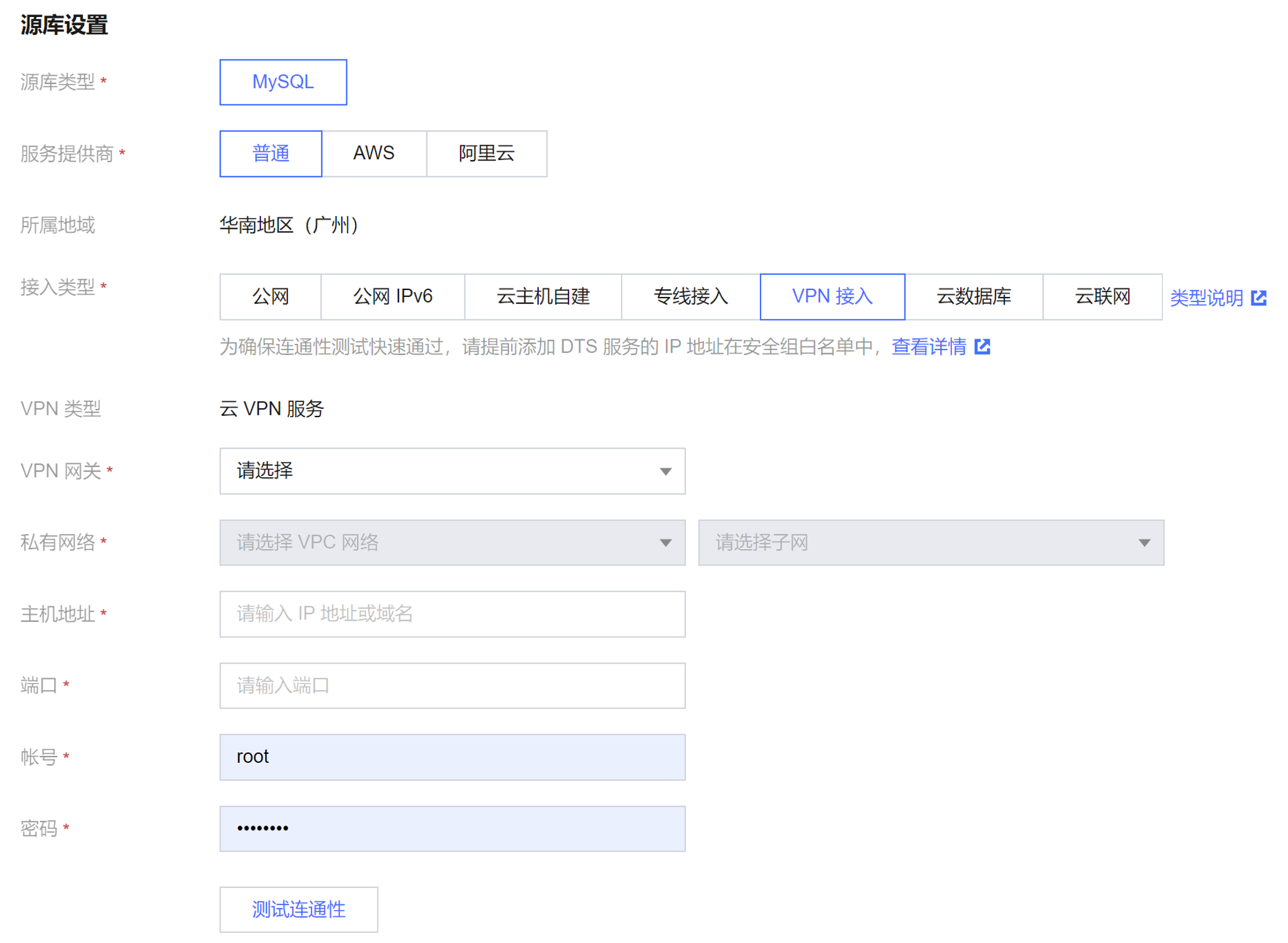 VPN接入:源数据库可以通过 VPN 连接 方式与腾讯云私有网络打通。