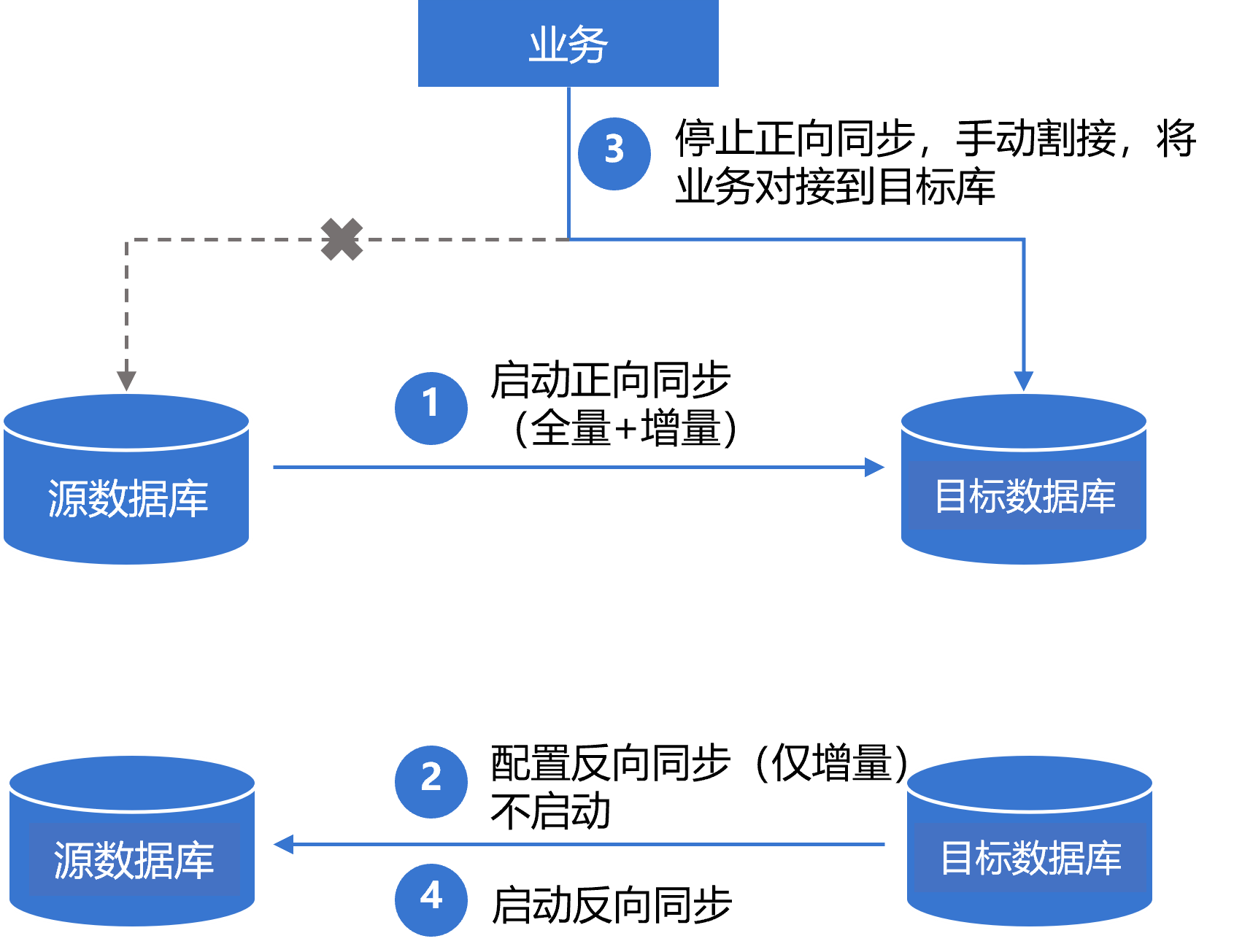 3. 手动将源库业务对接到目标库。