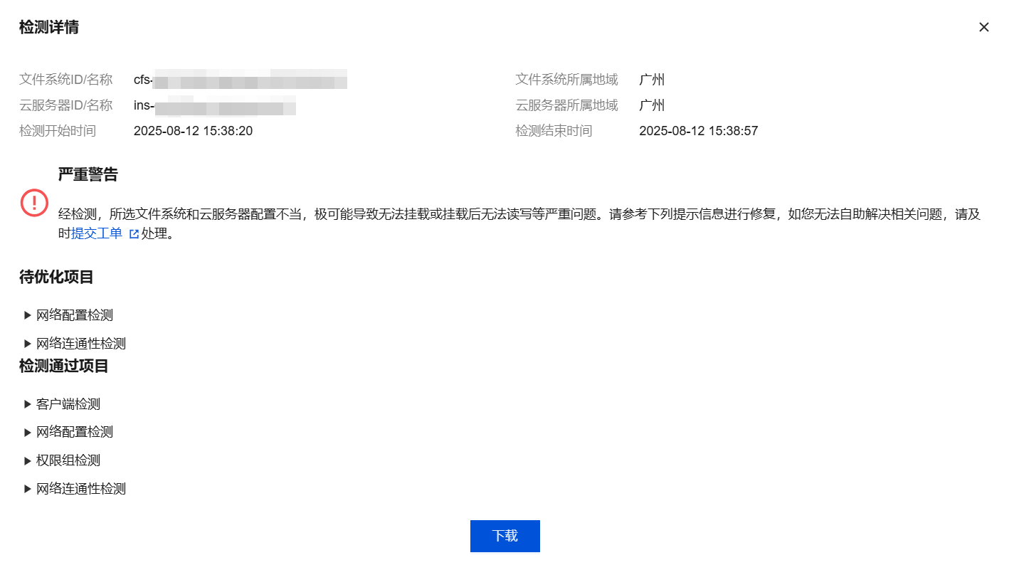 mount -l,确认当前已挂载的文件系统中不包含需要挂载的 CFS 文件系统。mount.nfs: mount point /localfolder does not exist,说明本地目录不存在,您可以创建本地目录,再重新执行挂载命令。mount.nfs: mounting 10.xxx.xxx.xxx:/abcdefgh/subfolder failed, reason given by server: No such file or directory,说明 CFS 文件系统中并不存在指定的子目录,您可以先挂载根目录/,挂载成功后创建子目录,再重新挂载子目录。mount.nfs: Connection timed out,您可以在控制台使用 CFS 自助检测 功能,选择需要挂载的云服务器及对应的 CFS 文件系统,执行检测,根据检查报告对操作系统内核、网络、端口、权限组等进行排查。如您无法自助解决相关问题,请及时通过 工单系统 进行反馈。