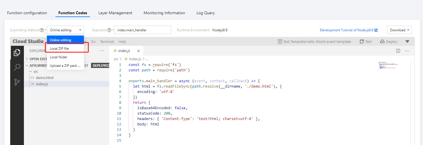 5. 创建完成后单击函数管理链接,进入云函数控制台进行下一步操作。