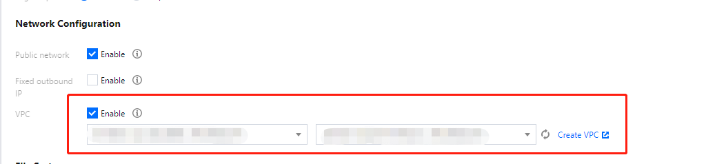 8. 在云函数的函数配置中修改 VPC 网络,将云函数 VPC 网络与云数据库 VPC 网络设为一致即可。