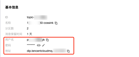 password | 用户密码,在控制台的弹性 Topic 基本信息页面获取。 |