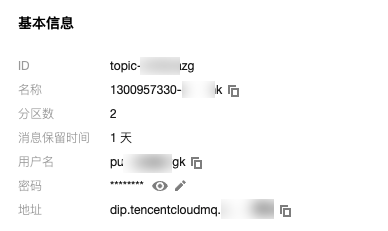 bootstrapServers | 接入地址,在控制台的弹性 Topic 基本信息页面获取。 ![]() |
