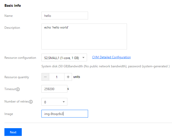 **资源配置**:可单击**云主机详细配置**进一步选择,详情请参见 [云服务器产品文档](https://www.tencentcloud.com/document/product/213) 。