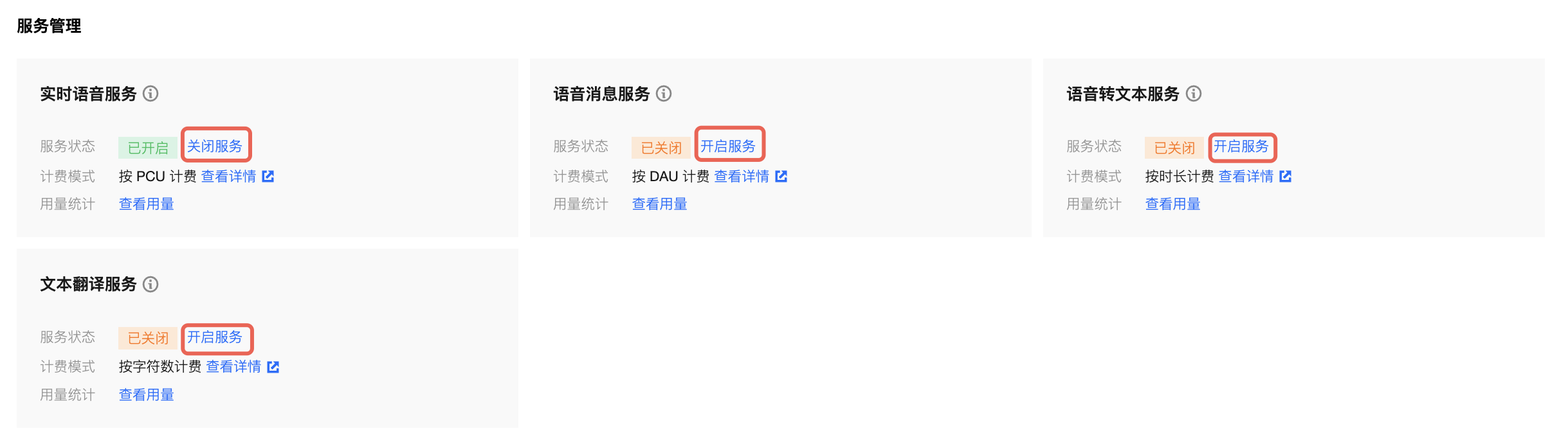 开启语音消息服务:按 DAU 计费,可根据需求选择开启。