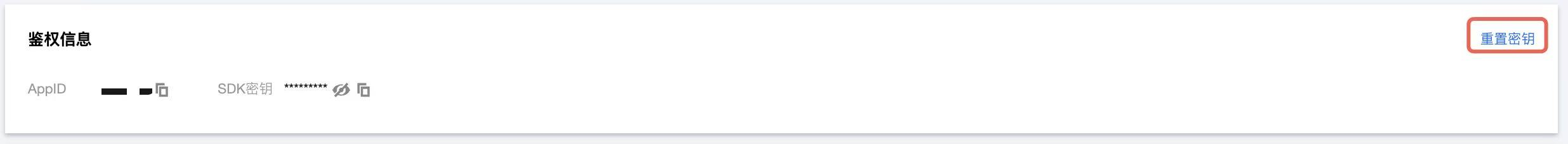 在鉴权信息区块中,可查看使用 SDK 语音服务所需的 AppID 和 权限密钥,单击重置密钥可生成新的密钥信息。