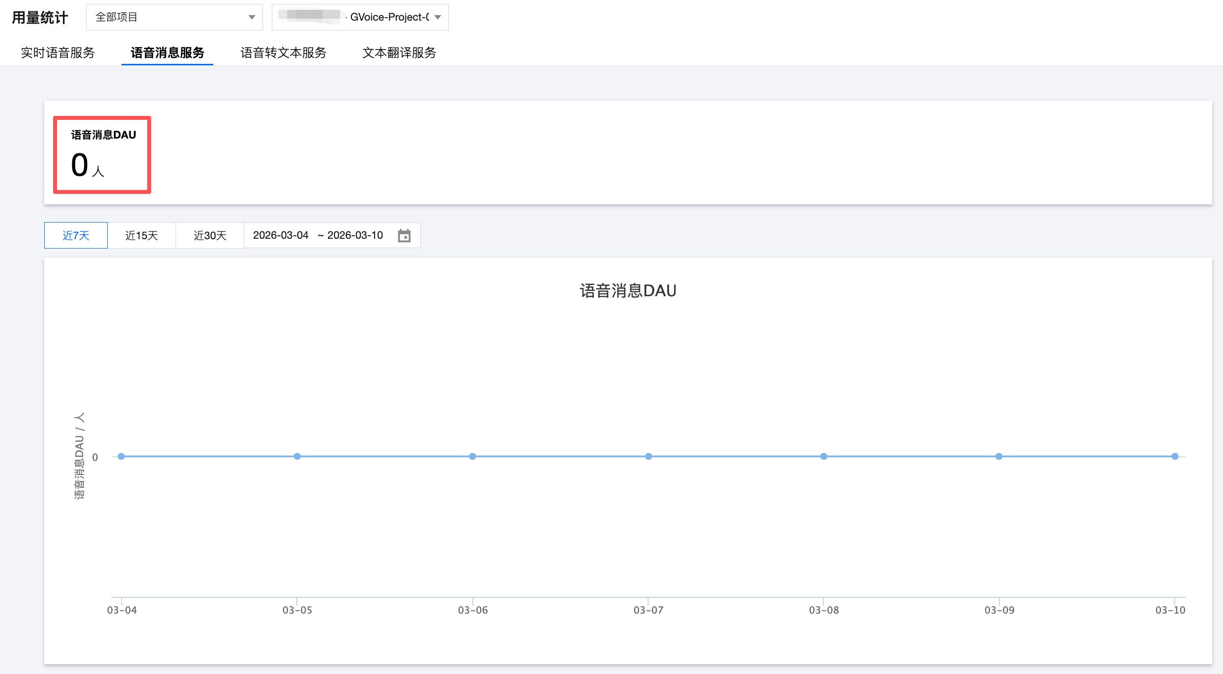 用量统计展示语音消息服务 DAU 用量数据。