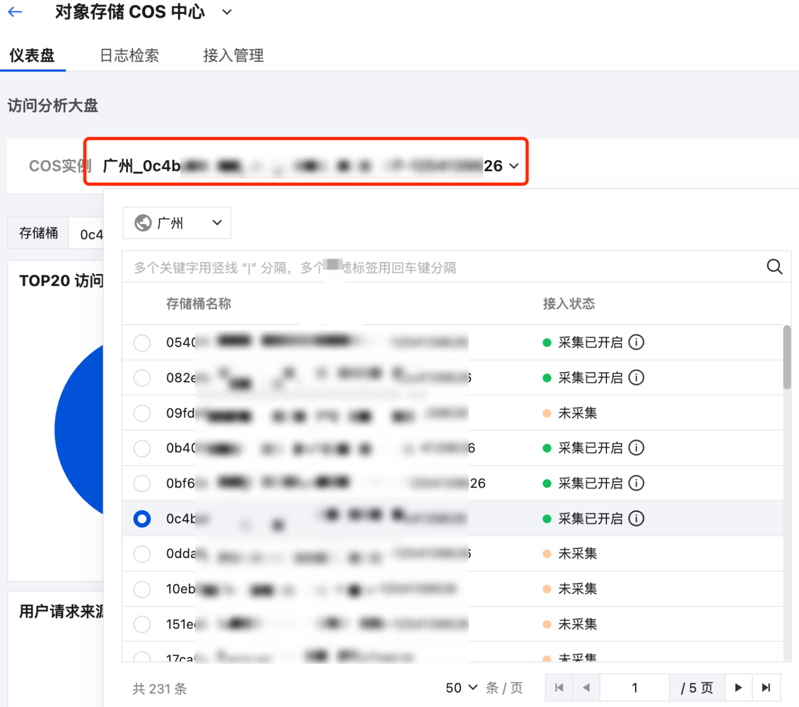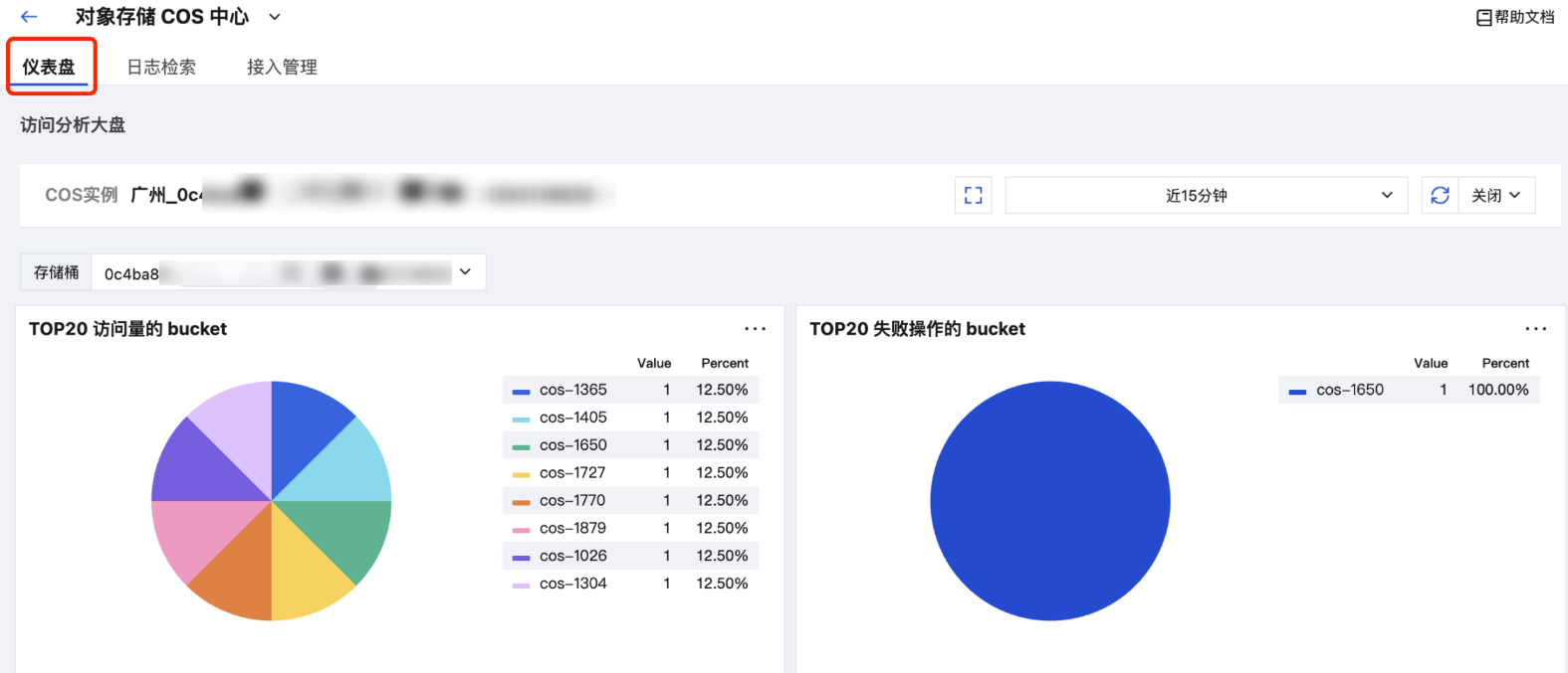 3. 选中实例后,即可查看与选中存储桶相关的存储桶访问分析大盘。