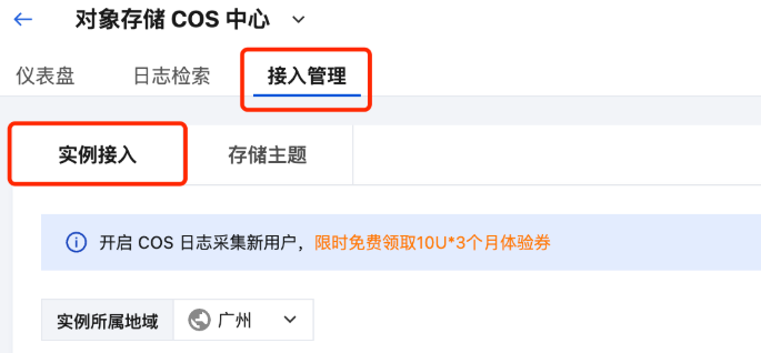 1. 在对象存储 COS 中心中,选择接入管理 > 实例接入。