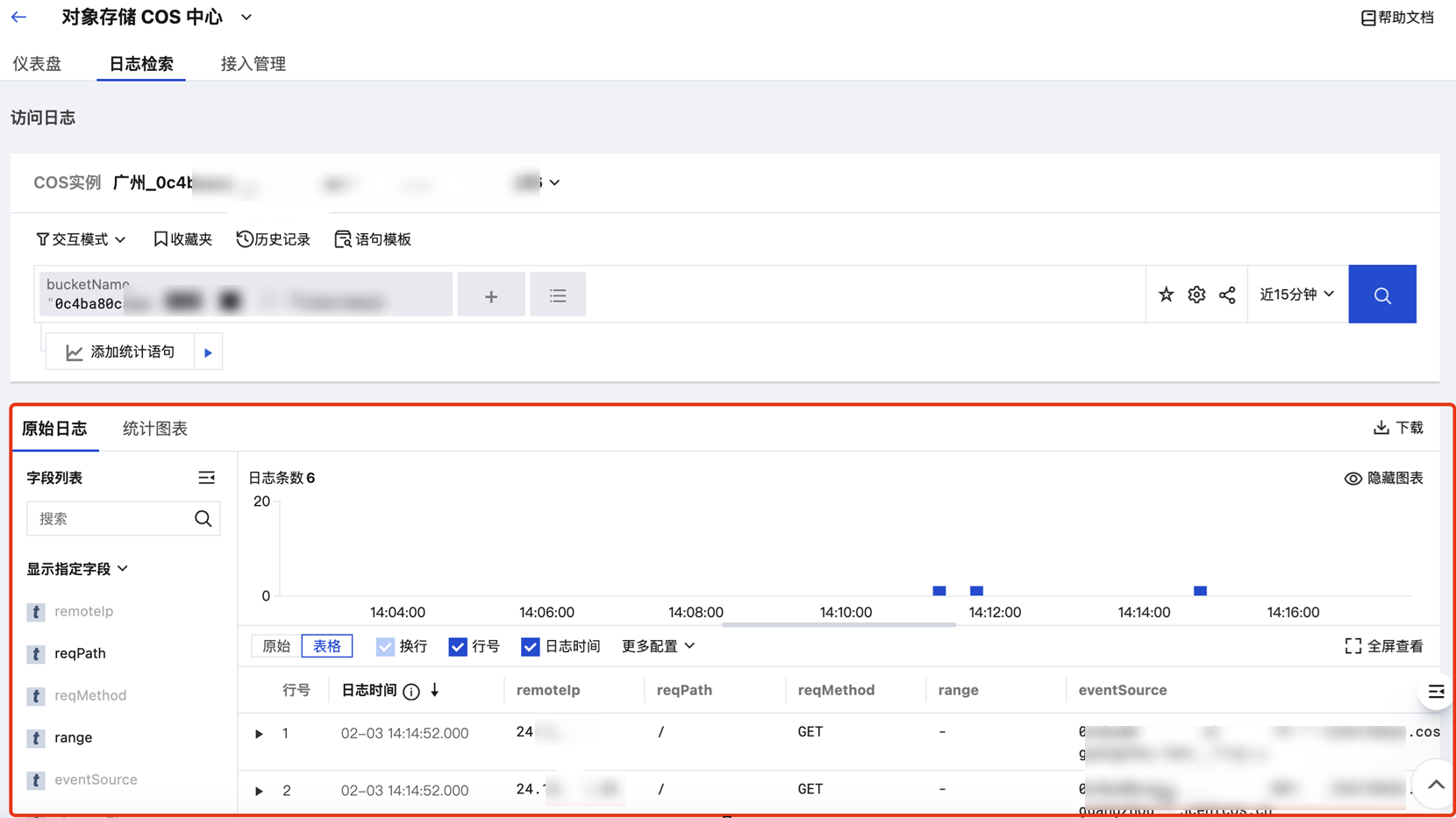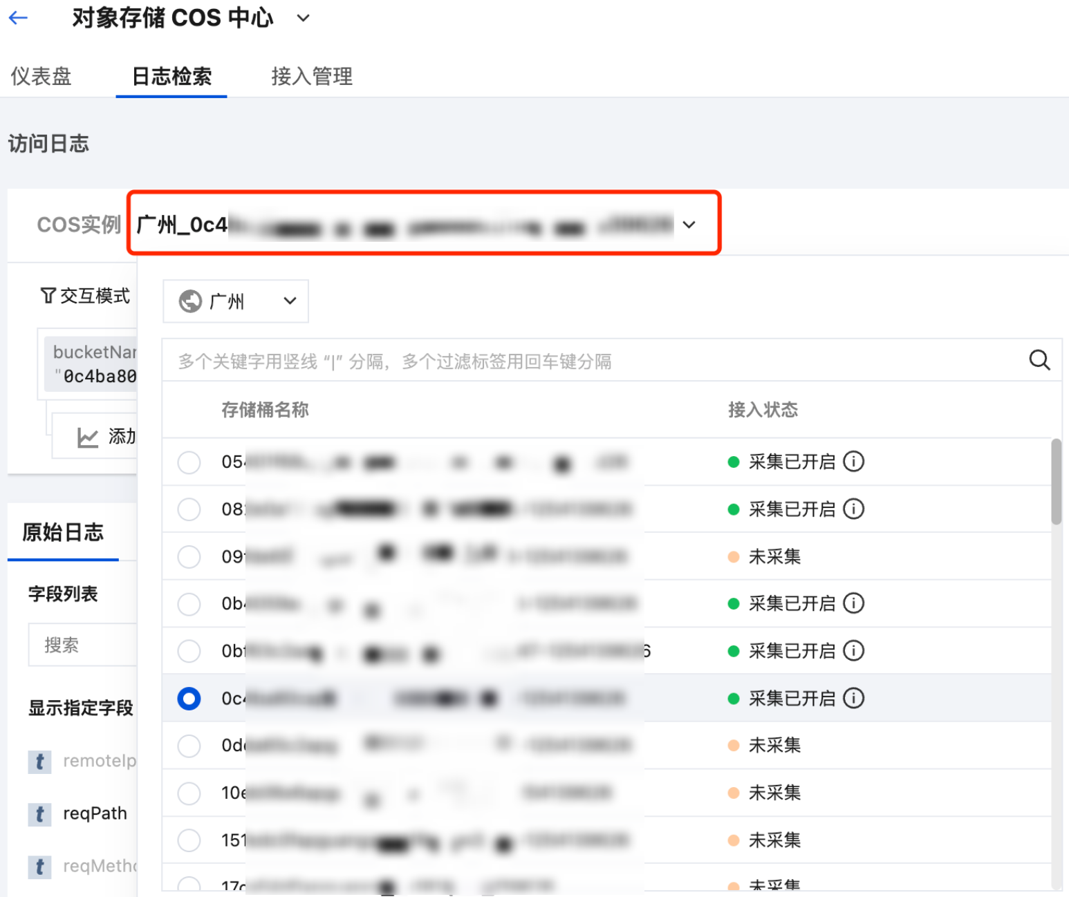 3. 选中实例后,即可检索分析与选中存储桶相关的存储桶访问日志。