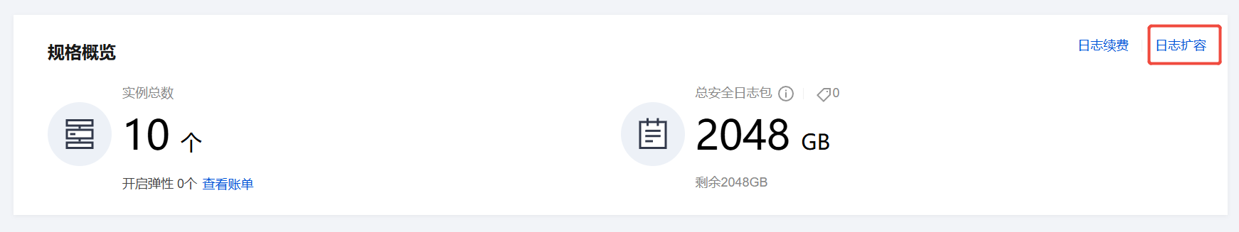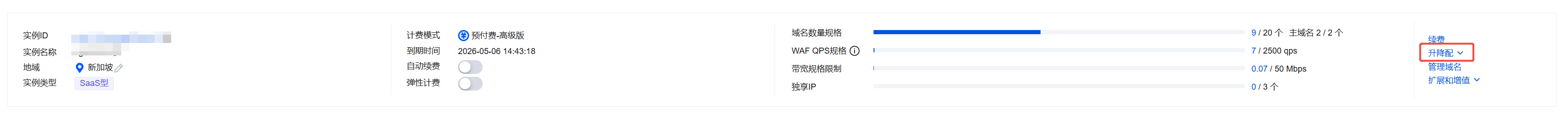 2. 在实例详情页面中,可以对对应资源进行升级扩容。
