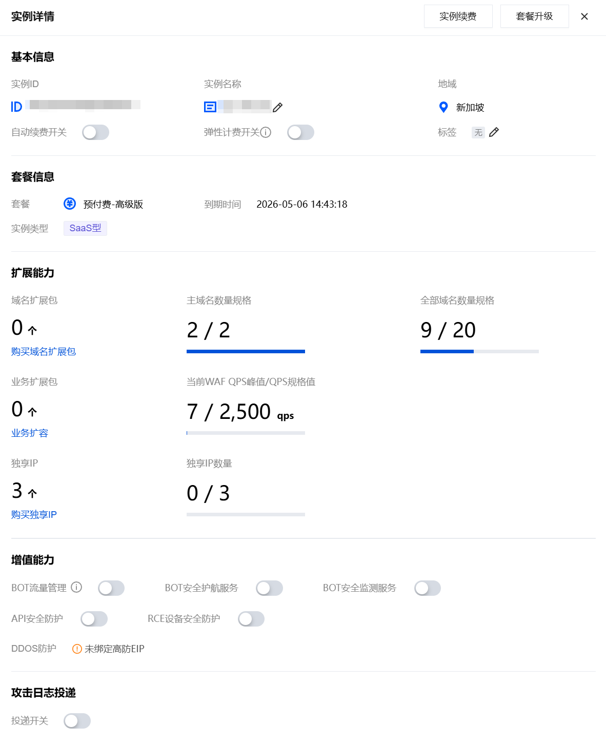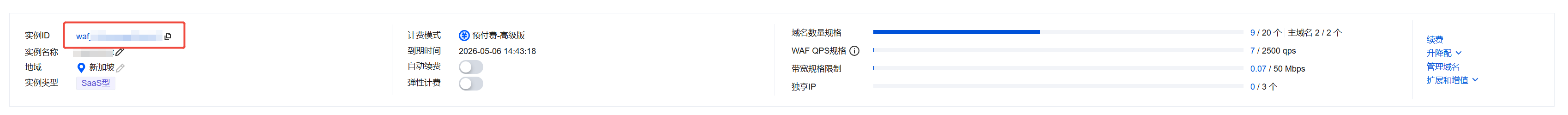 WAF 套餐升级方式