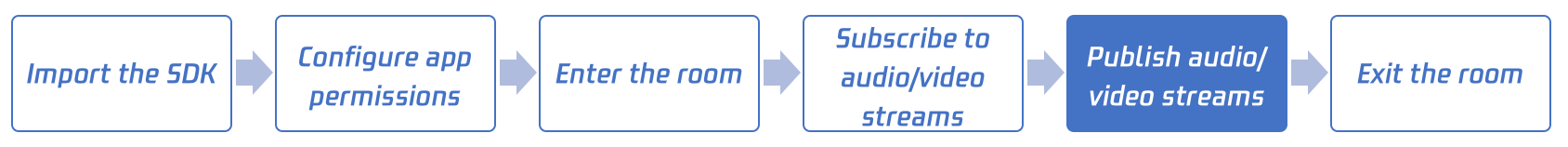 self.trtcCloud = [TRTCCloud sharedInstance];self.trtcCloud.delegate = self;// 组装 TRTC 进房参数,请将 TRTCParams 中的各字段都替换成您自己的参数// Please replace each field in TRTCParams with your own parametersTRTCParams *params = [[TRTCParams alloc] init];params.sdkAppId = 1400000123; // Please replace with your own SDKAppIDparams.roomId = 123321; // Please replace with your own room numberparams.userId = @"denny"; // Please replace with your own useridparams.userSig = @"xxx"; // Please replace with your own userSigparams.role = TRTCRoleAnchor;// 如果您的场景是“在线直播”,请将应用场景设置为 TRTC_APP_SCENE_LIVE// If your application scenario is a video call between several people, please use "TRTC_APP_SCENE_LIVE"[self.trtcCloud enterRoom:params appScene:TRTCAppSceneLIVE];