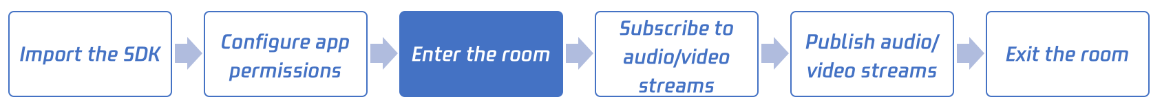 self.trtcCloud = [TRTCCloud sharedInstance];self.trtcCloud.delegate = self;// 组装 TRTC 进房参数,请将 TRTCParams 中的各字段都替换成您自己的参数// Please replace each field in TRTCParams with your own parametersTRTCParams *params = [[TRTCParams alloc] init];params.sdkAppId = 1400000123; // Please replace with your own SDKAppIDparams.roomId = 123321; // Please replace with your own room numberparams.userId = @"denny"; // Please replace with your own useridparams.userSig = @"xxx"; // Please replace with your own userSigparams.role = TRTCRoleAnchor;// 如果您的场景是“在线直播”,请将应用场景设置为 TRTC_APP_SCENE_LIVE// If your application scenario is a video call between several people, please use "TRTC_APP_SCENE_LIVE"[self.trtcCloud enterRoom:params appScene:TRTCAppSceneLIVE];