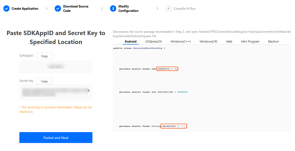 /lib/debug/GenerateTestUserSig.dart 文件。GenerateTestUserSig.dart 文件中的相关参数:
