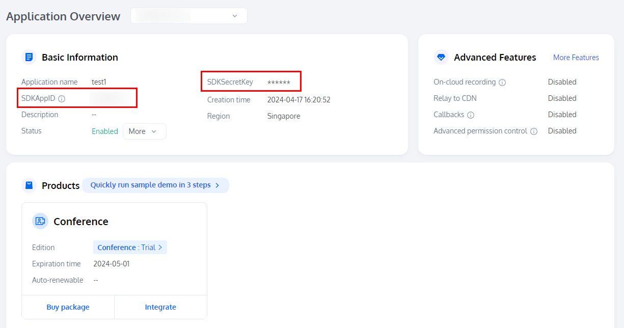 1. 开通音视频服务,获取 SDKAppIDSDKSecretKey