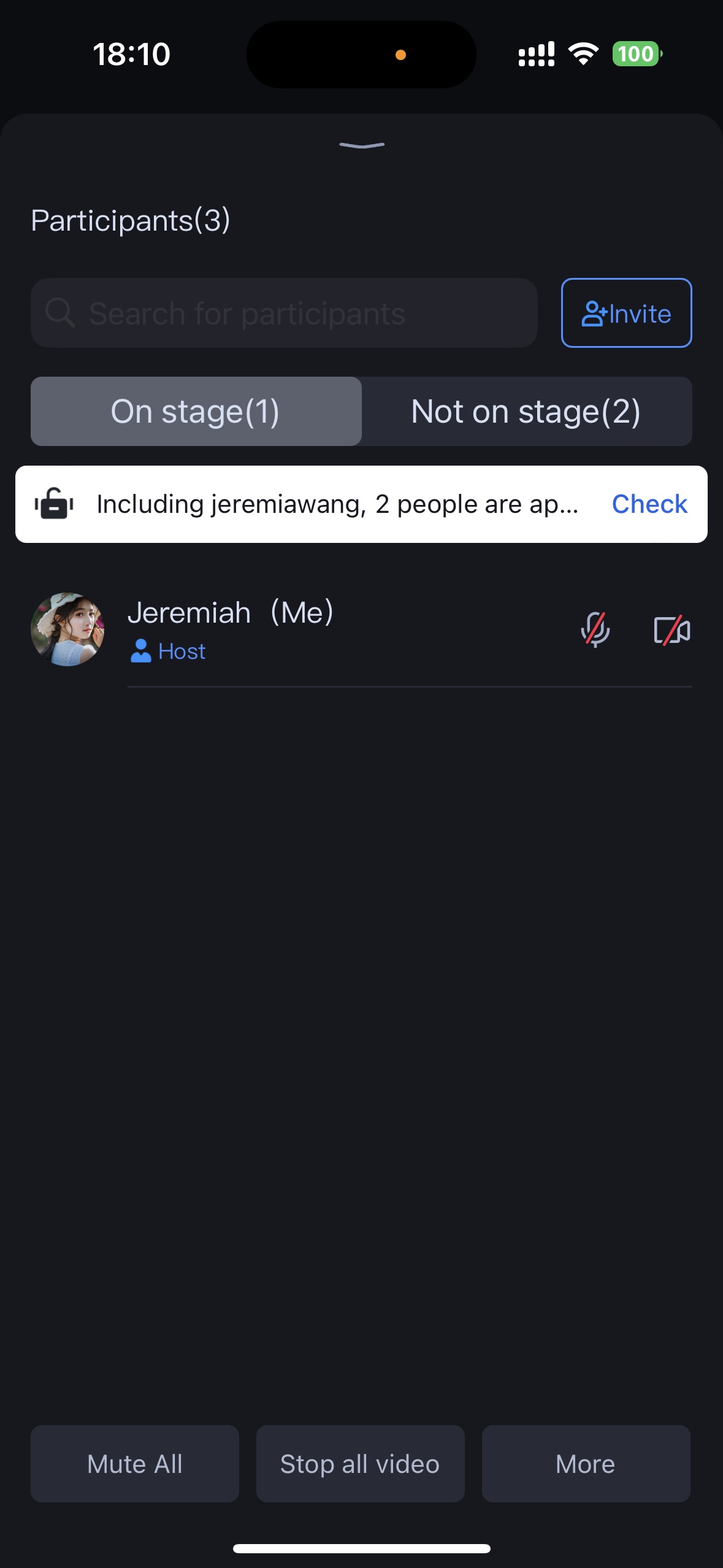 上台发言房间:仅台上用户可自由开启或关闭麦克风和摄像头,普通观众可通过举手申请成为台上用户。