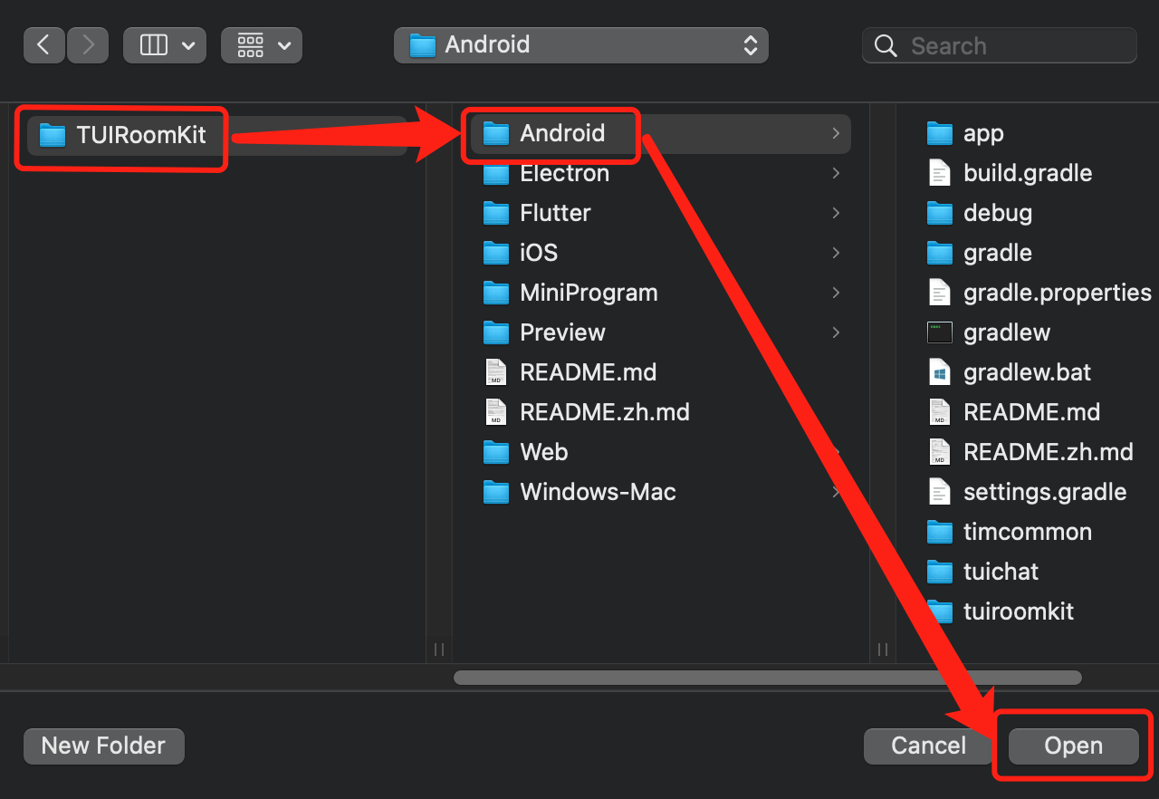 2. 通过 Android Studio 打开 TUIRoomKit Android 项目: