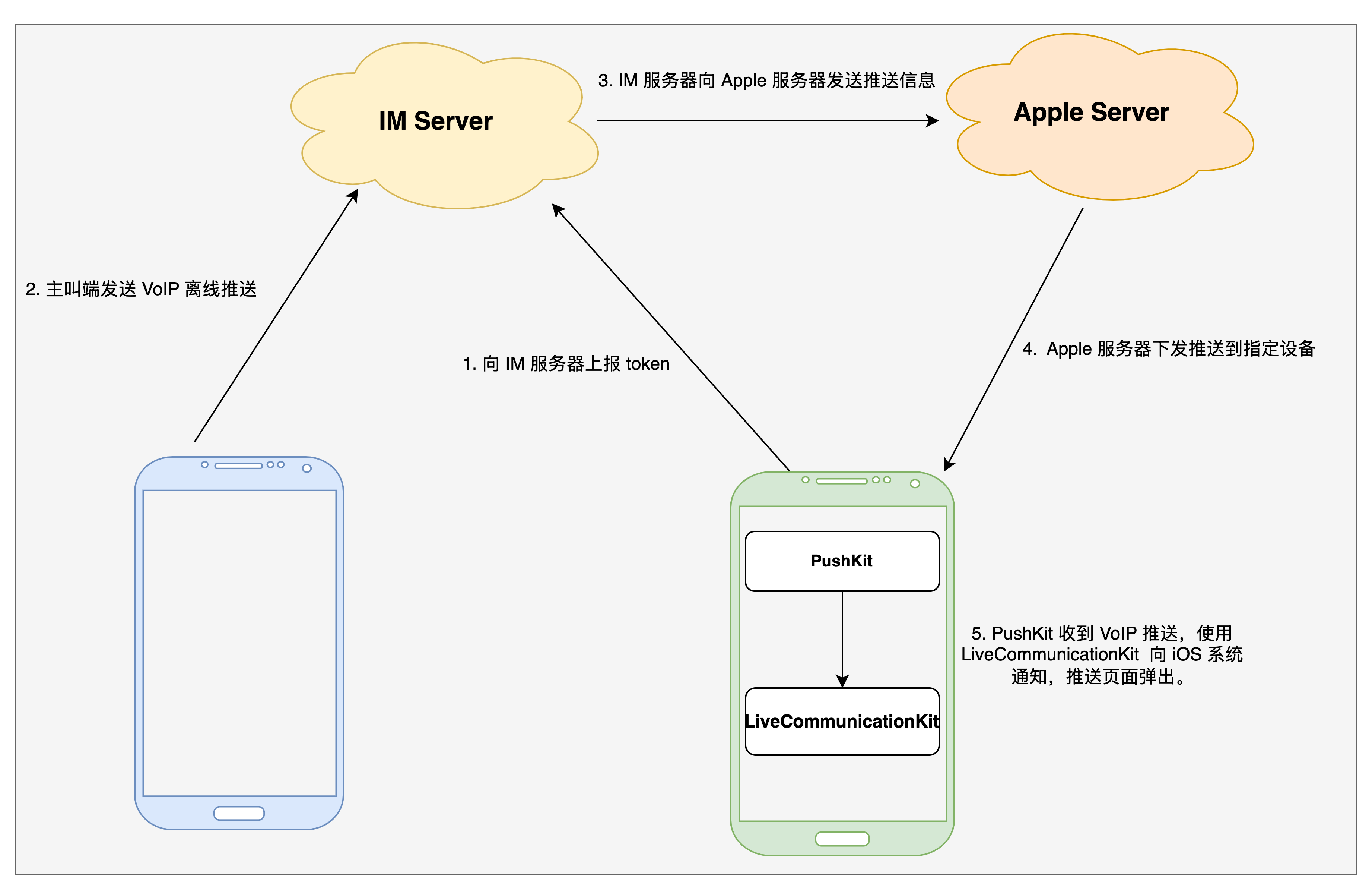 #import <TUICallKit_Swift/TUICallKit_Swift-Swift.h>#import <RTCRoomEngine/TUICallEngine.h>- (TUICallParams *)getCallParams {TUIOfflinePushInfo *offlinePushInfo = [self createOfflinePushInfo];TUICallParams *callParams = [TUICallParams new];callParams.offlinePushInfo = offlinePushInfo;callParams.timeout = 30;return callParams;}- (TUIOfflinePushInfo *)createOfflinePushInfo {TUIOfflinePushInfo *pushInfo = [TUIOfflinePushInfo new];pushInfo.title = @"";pushInfo.desc = @"您有一个新的通话";pushInfo.iOSPushType = TUICallIOSOfflinePushTypeVoIP;pushInfo.ignoreIOSBadge = NO;pushInfo.iOSSound = @"phone_ringing.mp3";pushInfo.AndroidSound = @"phone_ringing";// OPPO必须设置ChannelID才可以收到推送消息,这个channelID需要和控制台一致// OPPO must set a ChannelID to receive push messages. This channelID needs to be the same as the console.pushInfo.AndroidOPPOChannelID = @"tuikit";// FCM channel ID, you need change PrivateConstants.java and set "fcmPushChannelId"pushInfo.AndroidFCMChannelID = @"fcm_push_channel";// VIVO message type: 0-push message, 1-System message(have a higher delivery rate)pushInfo.AndroidVIVOClassification = 1;// HuaWei message type: https://developer.huawei.com/consumer/cn/doc/development/HMSCore-Guides/message-classification-0000001149358835pushInfo.AndroidHuaWeiCategory = @"IM";return pushInfo;}[[TUICallKit createInstance] calls:@[@"123456"]callMediaType:TUICallMediaTypeAudioparams:[self getCallParams] succ:^{} fail:^(int code, NSString * _Nullable errMsg) {}];