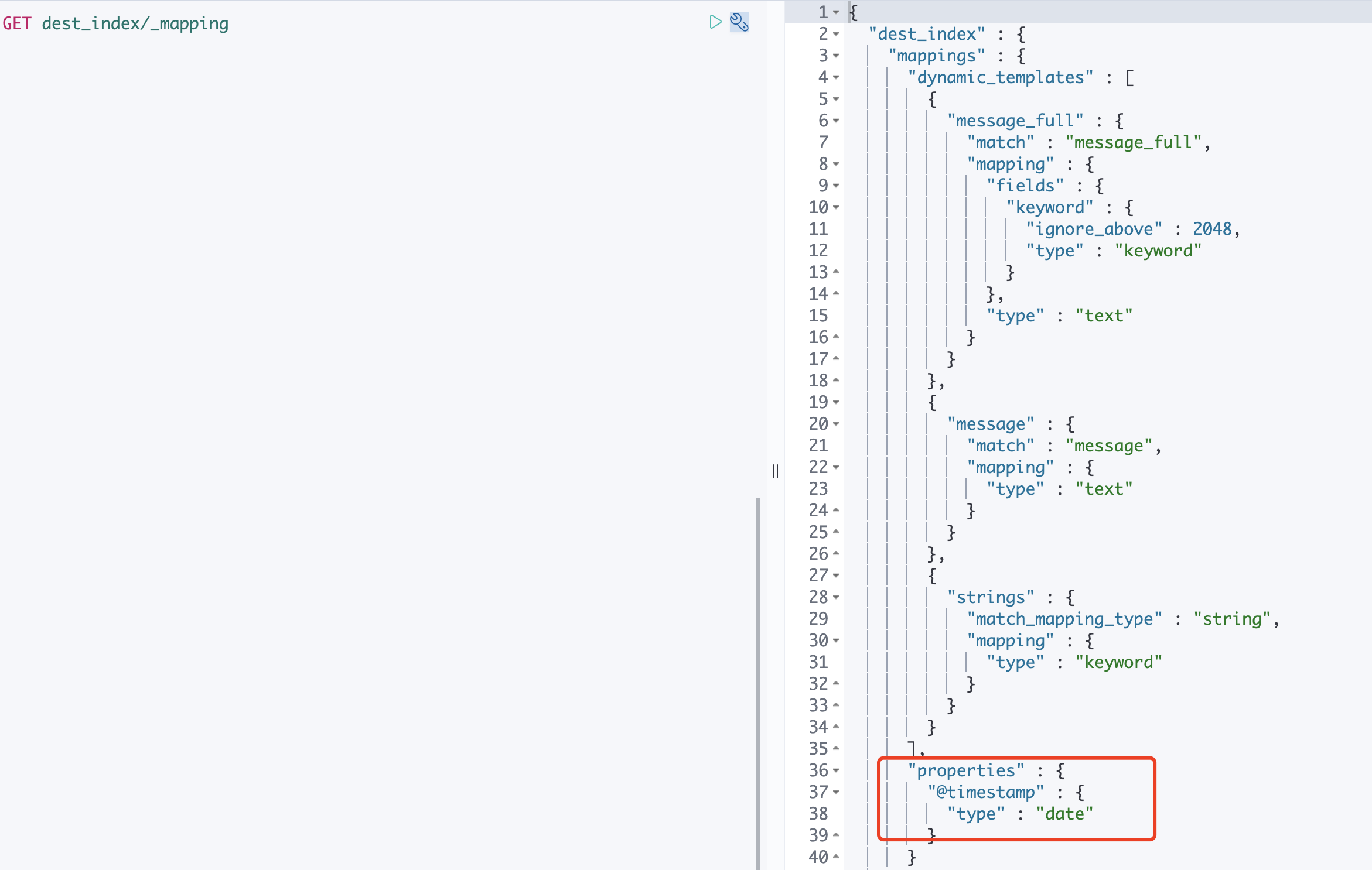 dest_index,同时在 mapping 中将该索引的字段@timestamp类型指定为date。